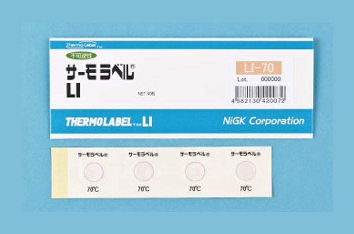 サーモラベルは、特定温度でシャープに変色します。一度変色すると元の色に戻らない不可逆性示温材