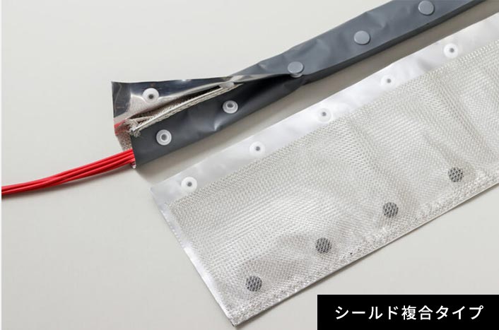 機器に設置される配線類を包み込むことにより、配線類の整理/保護、電磁波の侵入抑制/放射抑制の優れた製品群